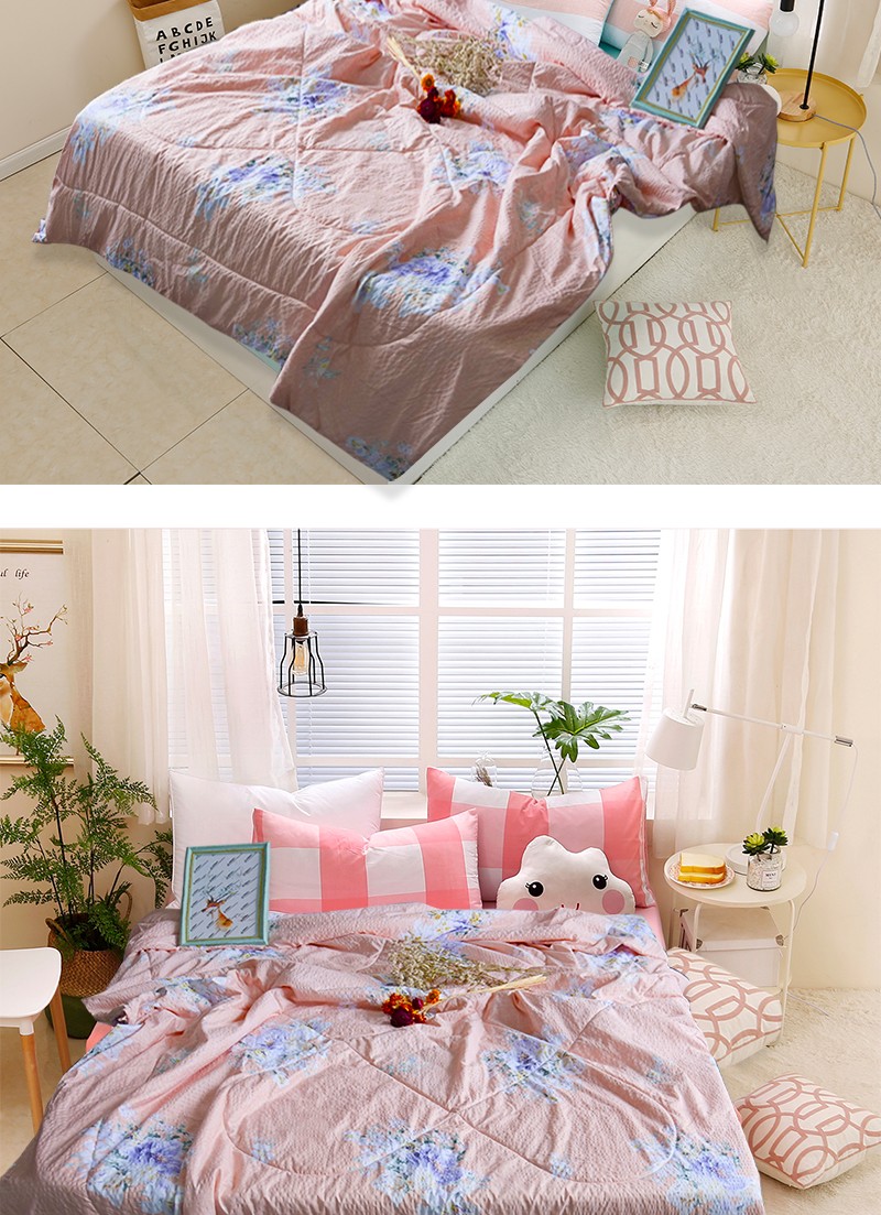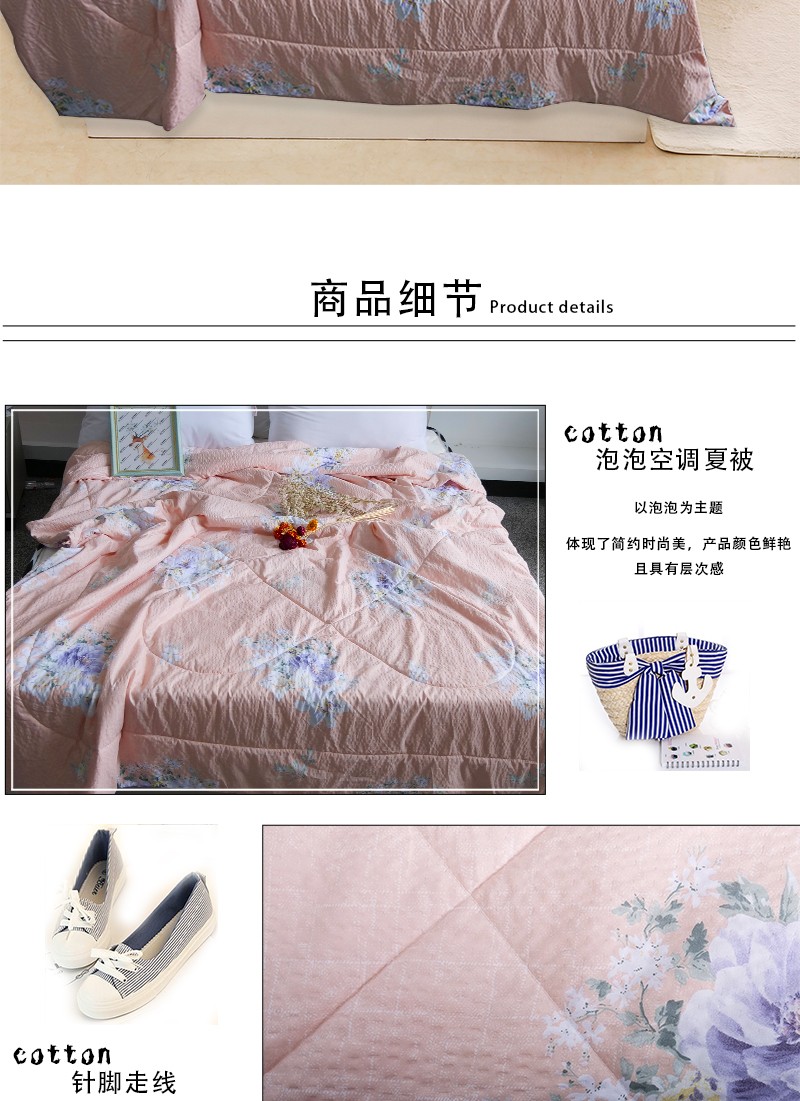 描述:具有泡泡的特殊外观风格,呈现出均匀密布凹凸,不仅抗皱性强,而且透气性好 优质羽丝棉填充,加上健康环保的印染工艺,让你的睡眠更加健康舒适