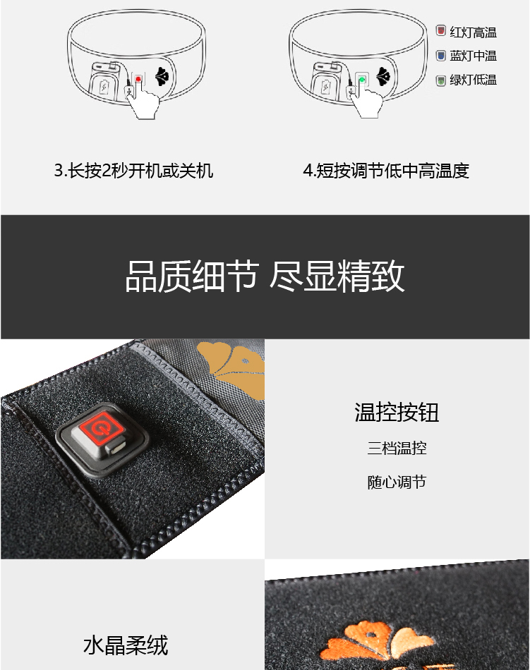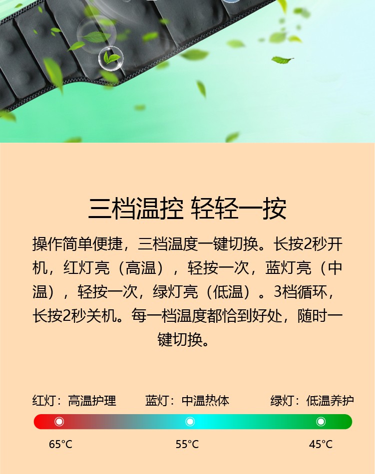 功能:石墨烯热敷、强磁灸穴、暖腹护腰、负离子